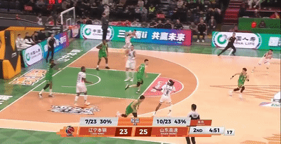 辽宁外线有所起势,但山东进攻也完全打开了,陈林坚三分+抛投联手珀赛尔砍下10分,节中山东54-40拉开到14分分差(山东5分钟6中6怎么打怎么有)。